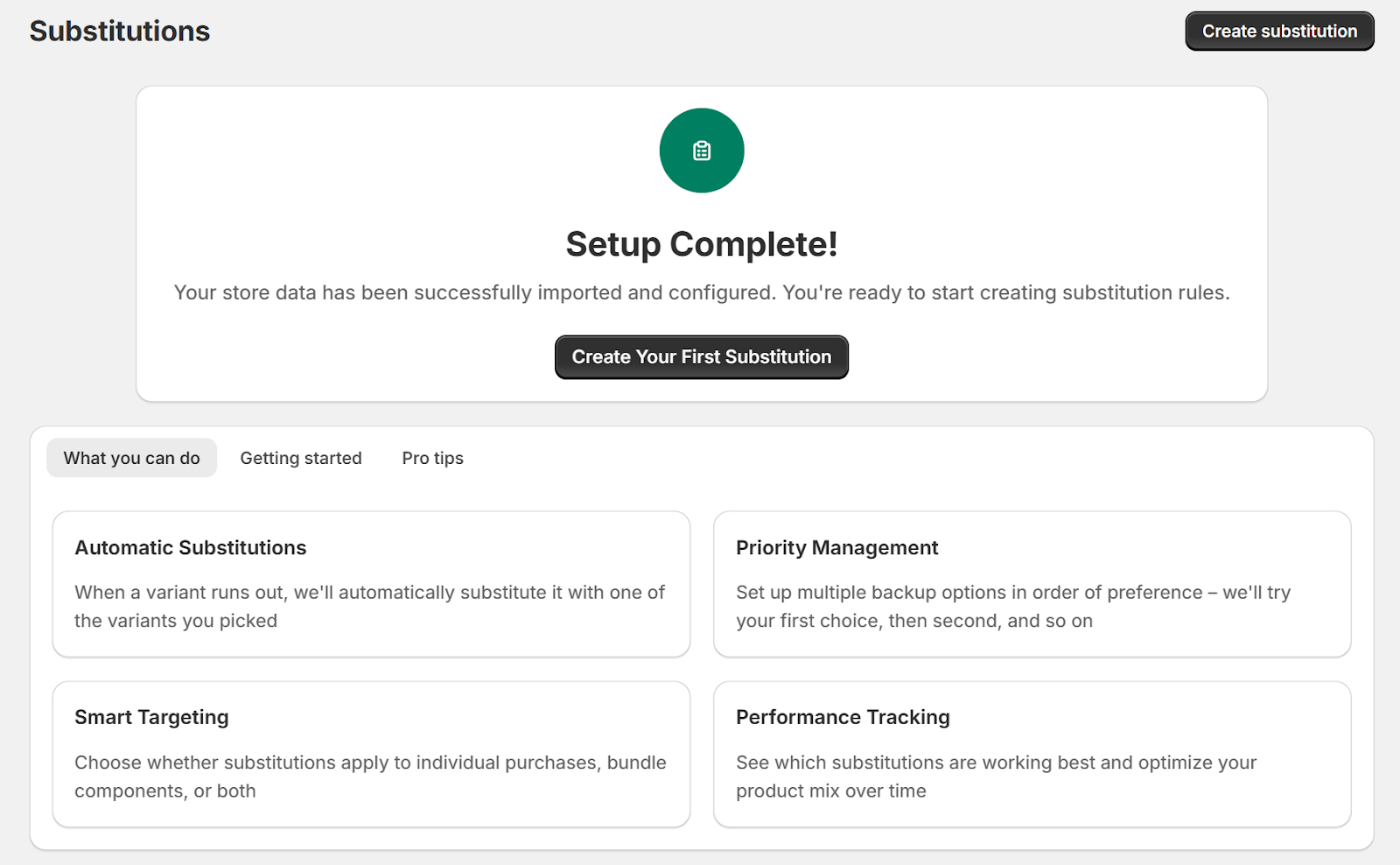 When you first open Substitutions, we'll get everything ready so substitutions just work.