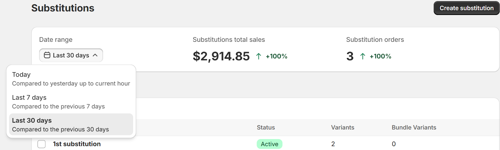 Your dashboard shows how substitutions are performing across your store and gives you quick access to manage your rules.